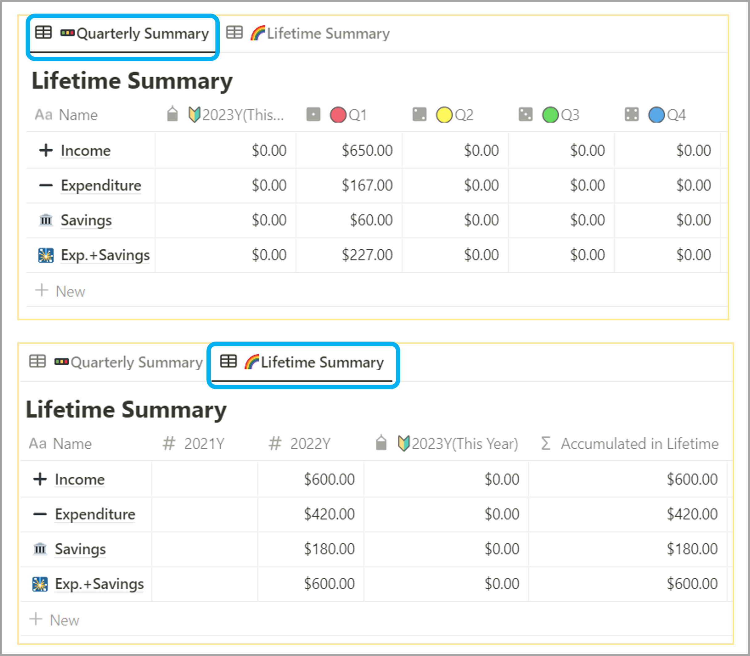 [Lifetime Summary]