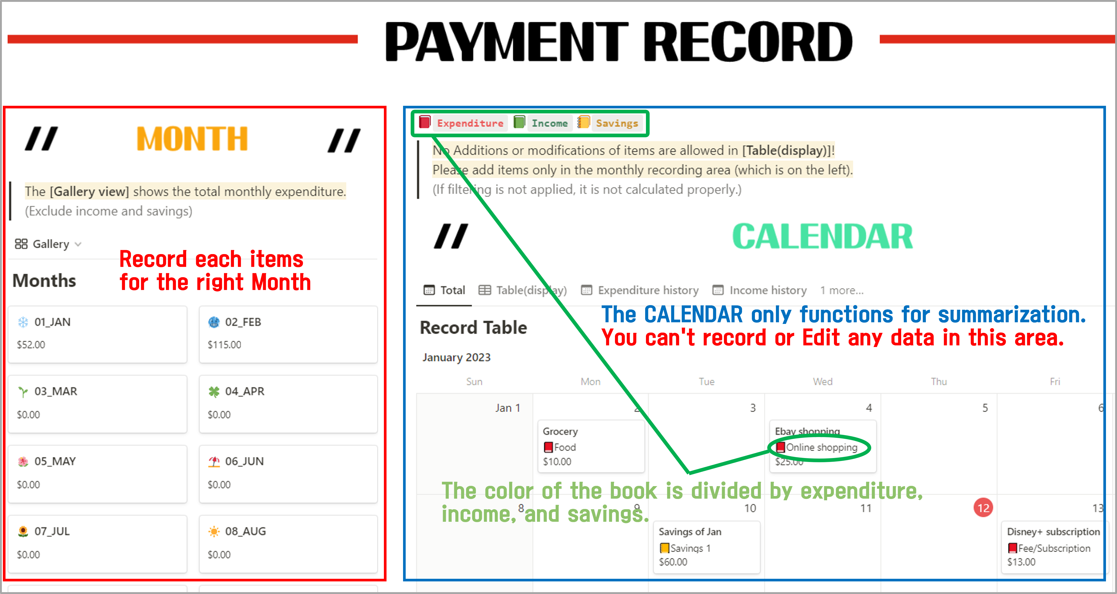 - Payment(=Expenditure), Savings